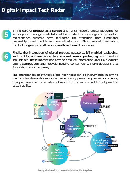 In the full version of our Digital4Impact Tech Radar you can find an introduction to the Tech Radar, an explanation of our methodology for each Deep Dive and all sectorial in-depth analysis.